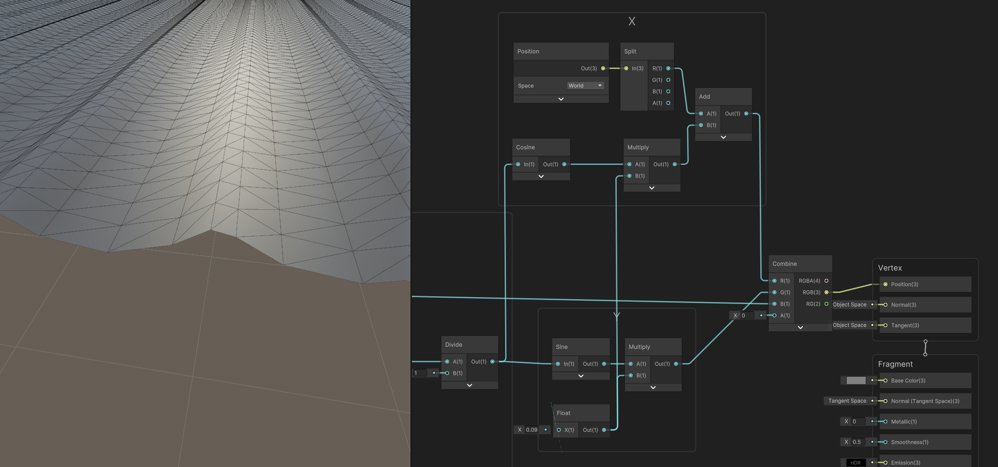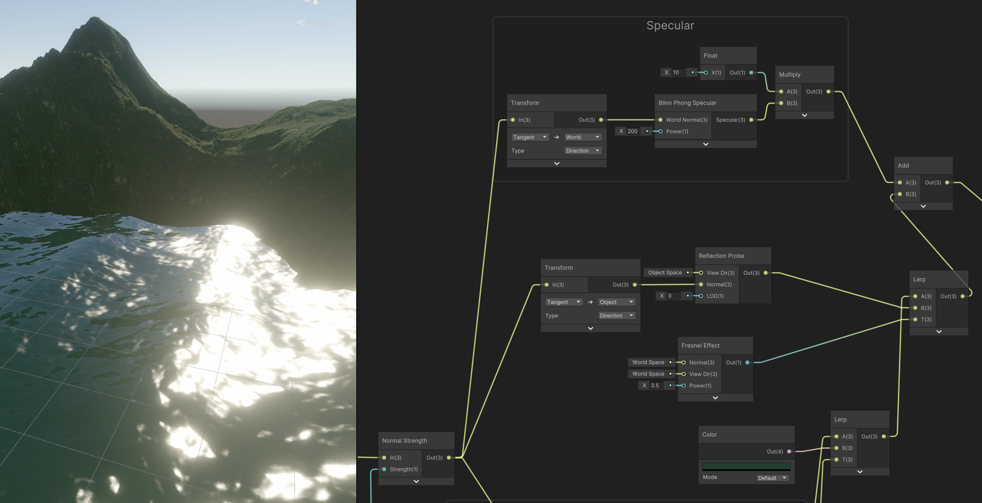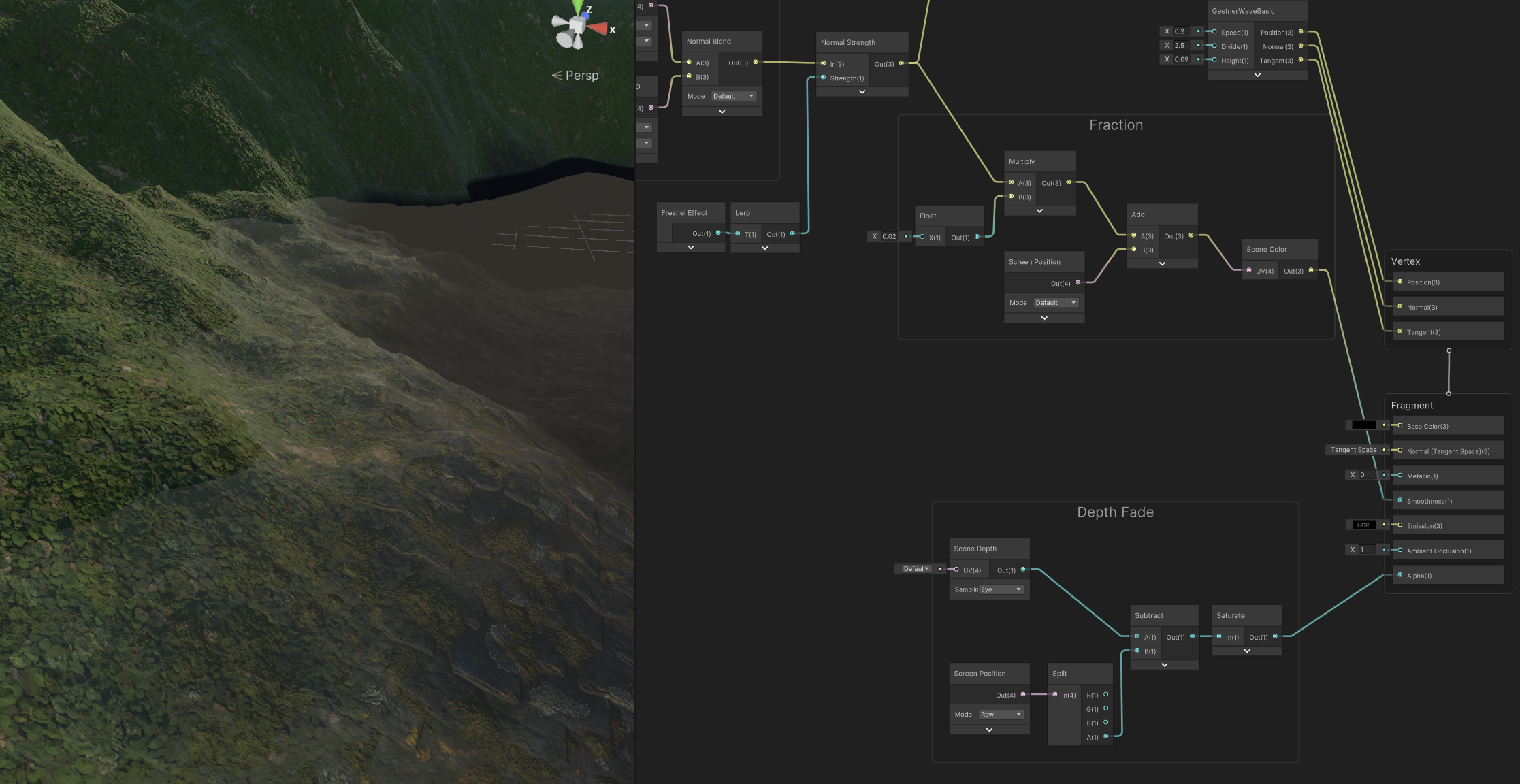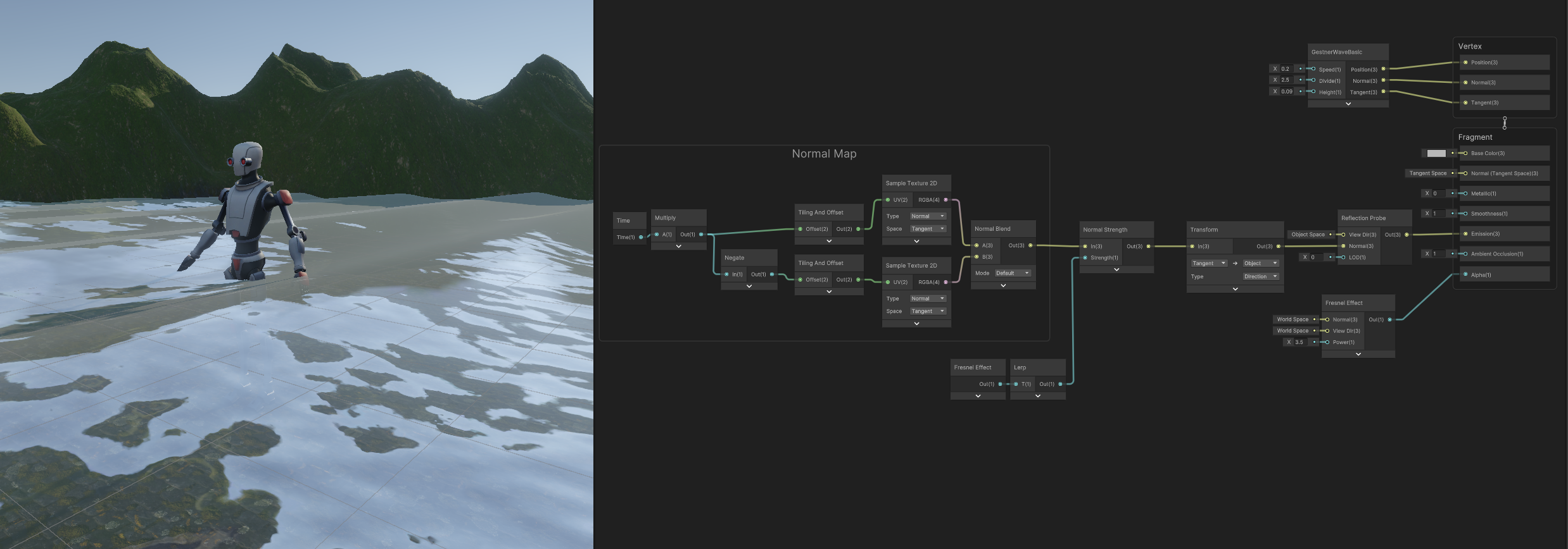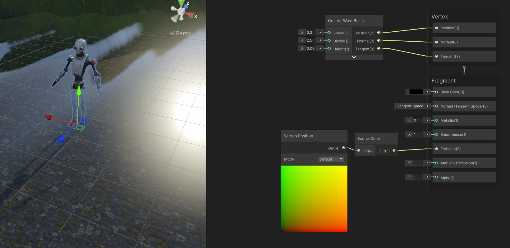 거스너 웨이브를 서브 그래프로 만들고, 이전에 만든 물과 합친다.