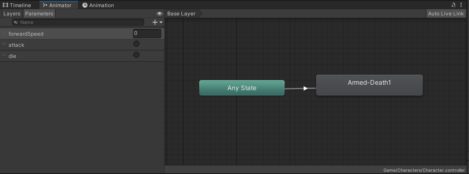 Any State를 활용하면 애니메이션을 여러 개 연결하지 않고도 애니메이션을 관리할 수 있다.