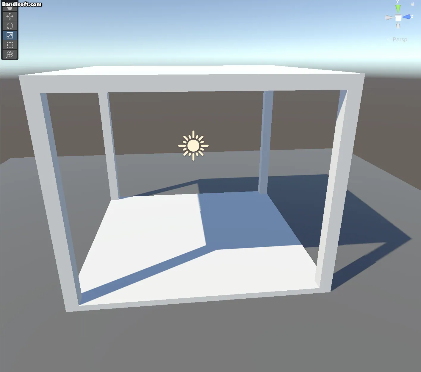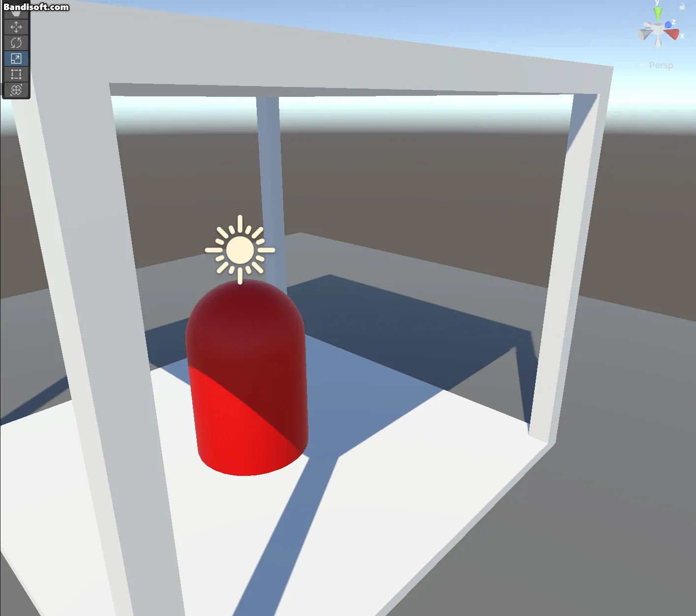 wall 레이어를 할당한 Transparent 벽 오브젝트 뒤에 one 레이어를 할당한 Transparent 큐브 오브젝트가 있다.