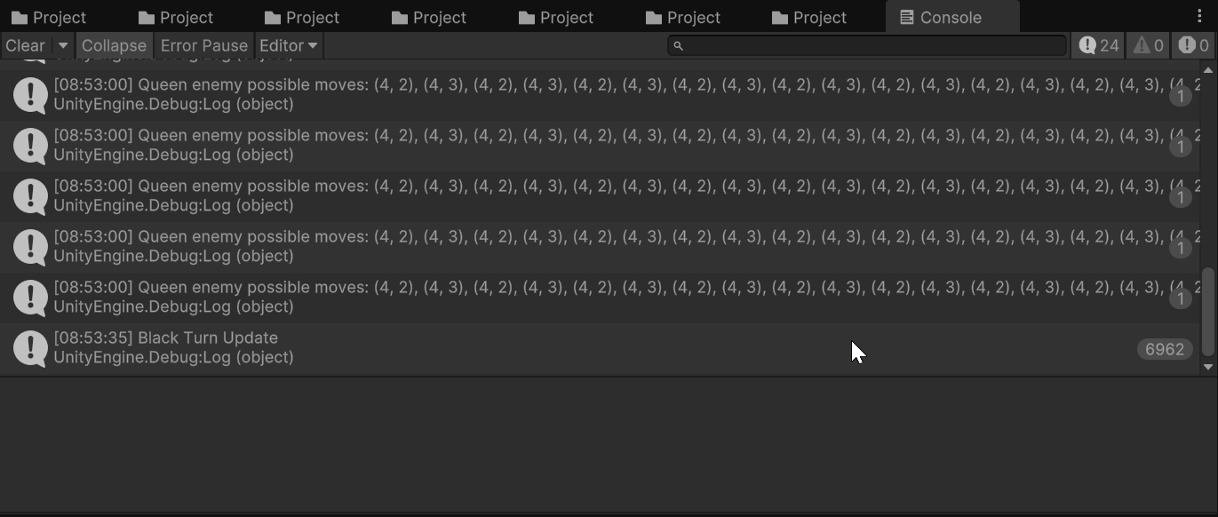 디버그 문구를 삽입하여 이유를 확인해보니, 그냥 아직 다른 기물들에 CheckCheck()을 넣어주지 않아서 그랬던 거였다.