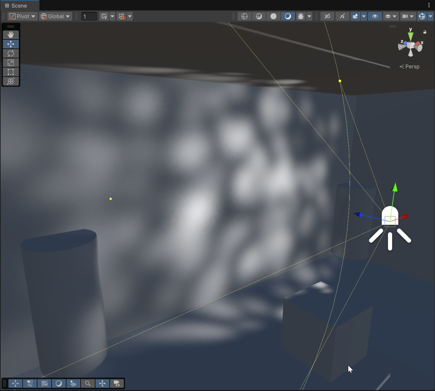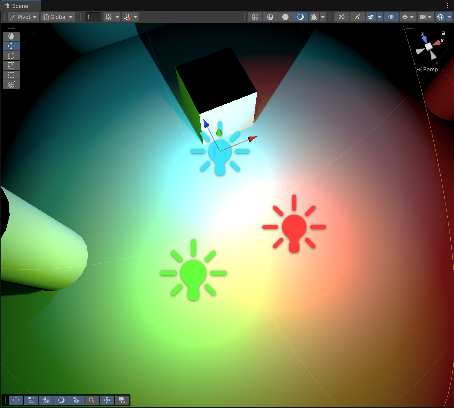 씬 뷰 좌측 상단 Global을 Local로 바꾸면 해당 오브젝트이 rotation한 대로 축이 변경됨