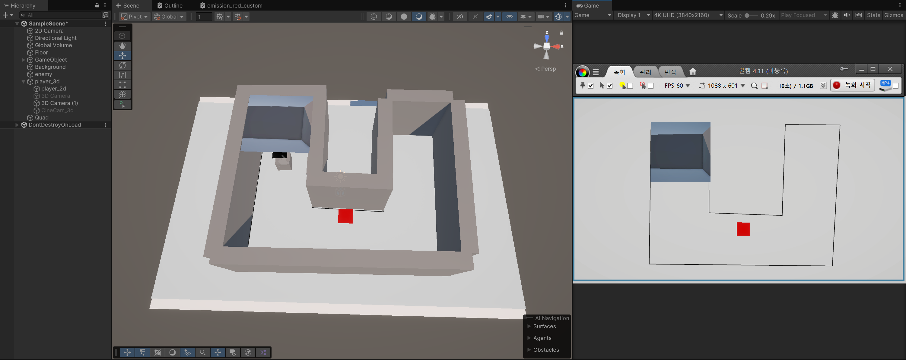 - 그걸 기반으로 벽 등 오브젝트를 설치한다