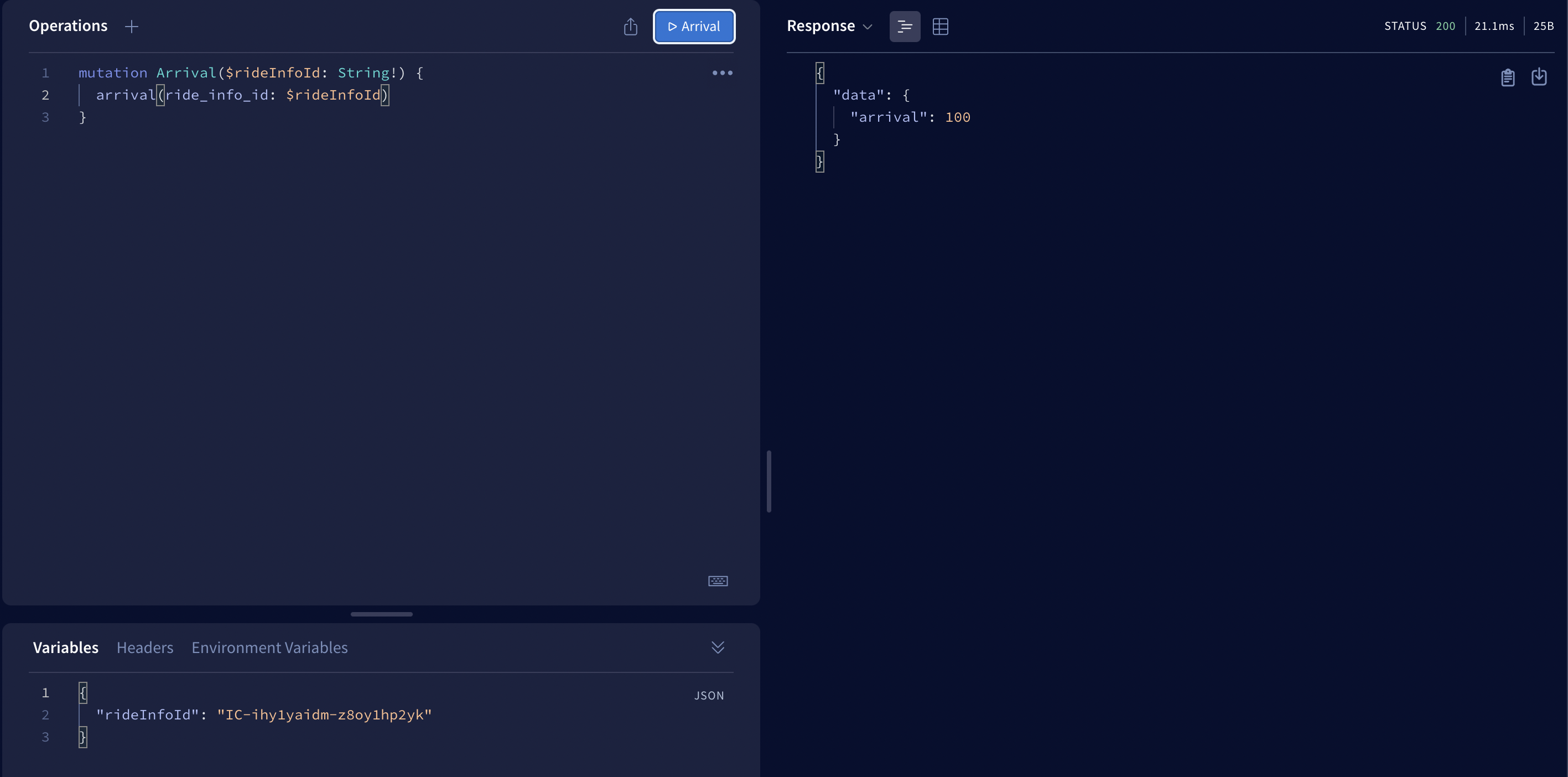 도착 후 arrival api를 호출하면 status가 FINSHED로 변경됩니다.