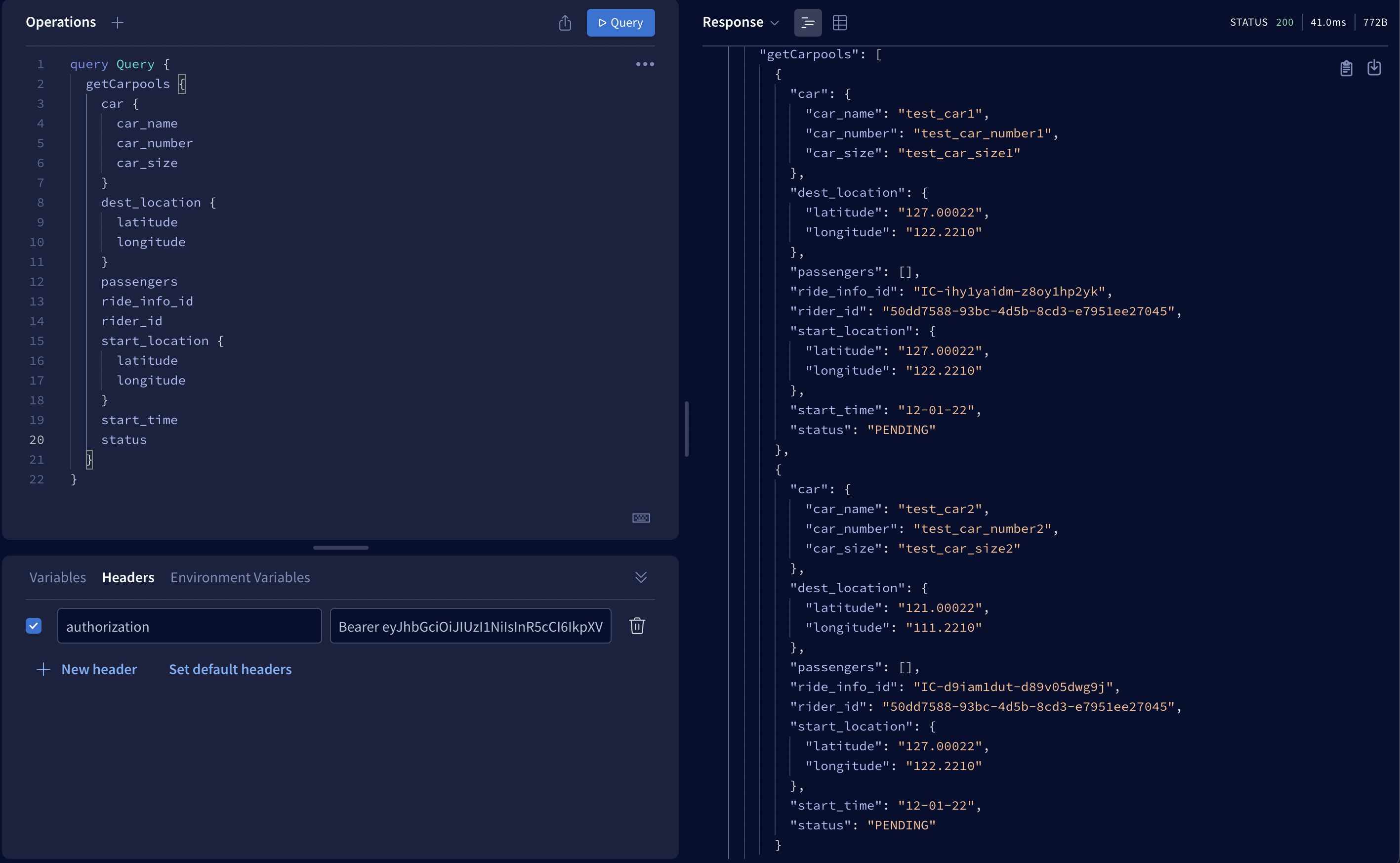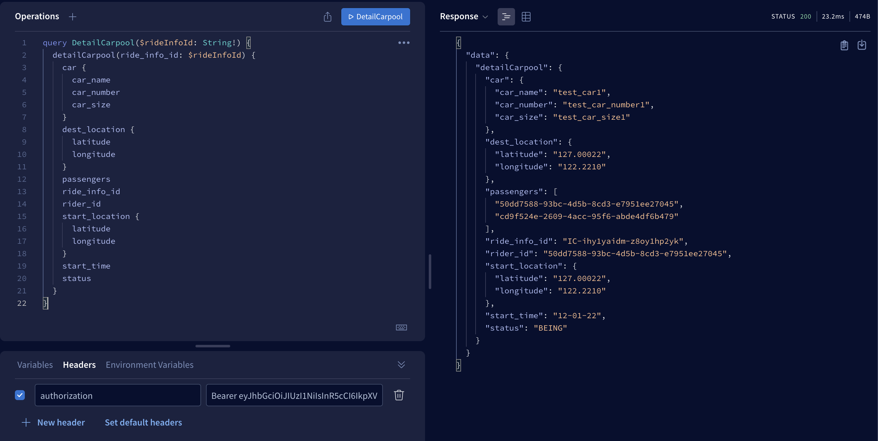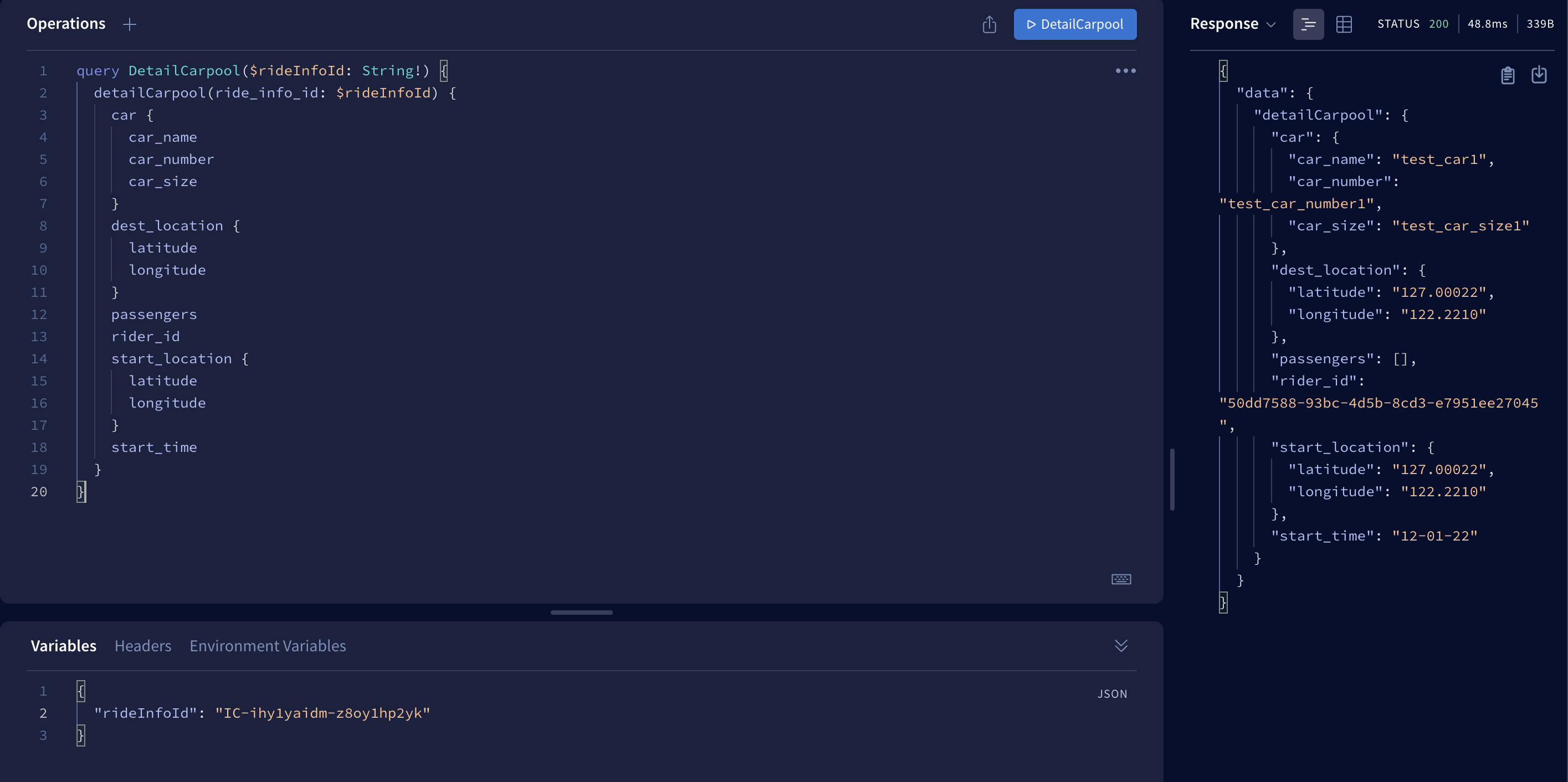 이로써 최종적인 ride-service 테스트까지 완료를 했습니다. 그러면 이를 이용하여 react native와 연동을 진행해보도록 하겠습니다.