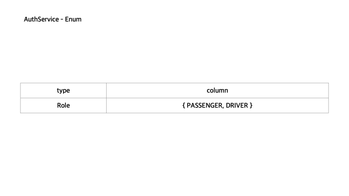 auth-service는 유저의 로그인, 회원가입 등과 같이 유저의 정보를 다루는 서비스입니다. 따라서 보안에 필요한 authentication, authorization과 같은 기능 그리고 비밀번호의 암호화등의 다양한 방법을 활용이 필요합니다. 우선 유저의 데이터를 저장하기 위한 관계 테이블은 다음과 같습니다.