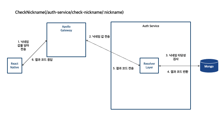 회원가입 시 고유한 닉네임인지 체크해주는 api입니다. 닉네임 값을 입력하면 이 닉네임 값을 전송하여 타당한 닉네임인지 결과 코드를 반환합니다.