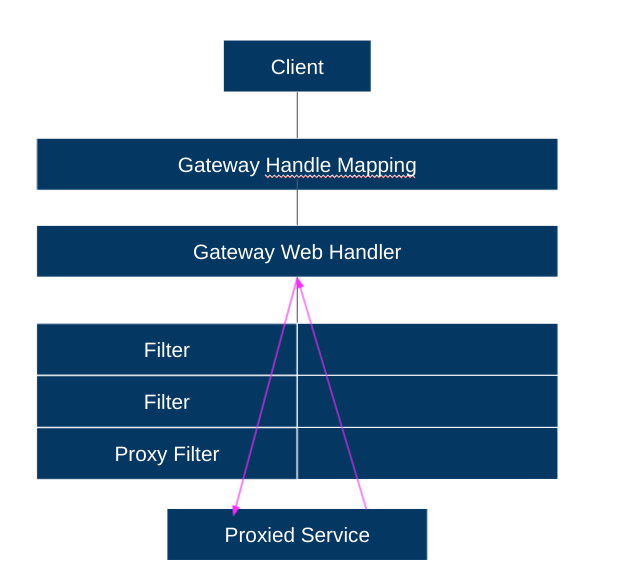 2) Gateway Web Handler는 필터 옵션에 명시한 클래스와 같은 설정들을 이용하여 요청을 전송합니다.