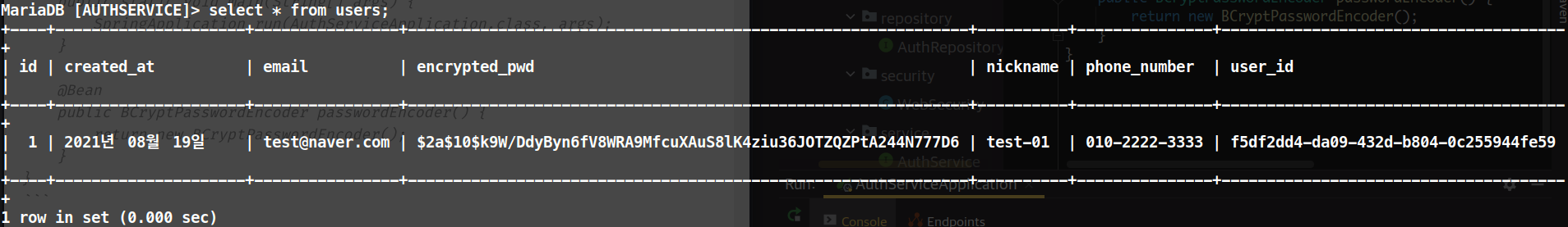 그리고 BCryptPasswordEncoder를 생성하면 autowired가 되지않는다는 에러가 뜰텐데 AuthServiceApplication클래스로 가서 bean주입을 통해 에러를 해결하도록 하겠습니다.