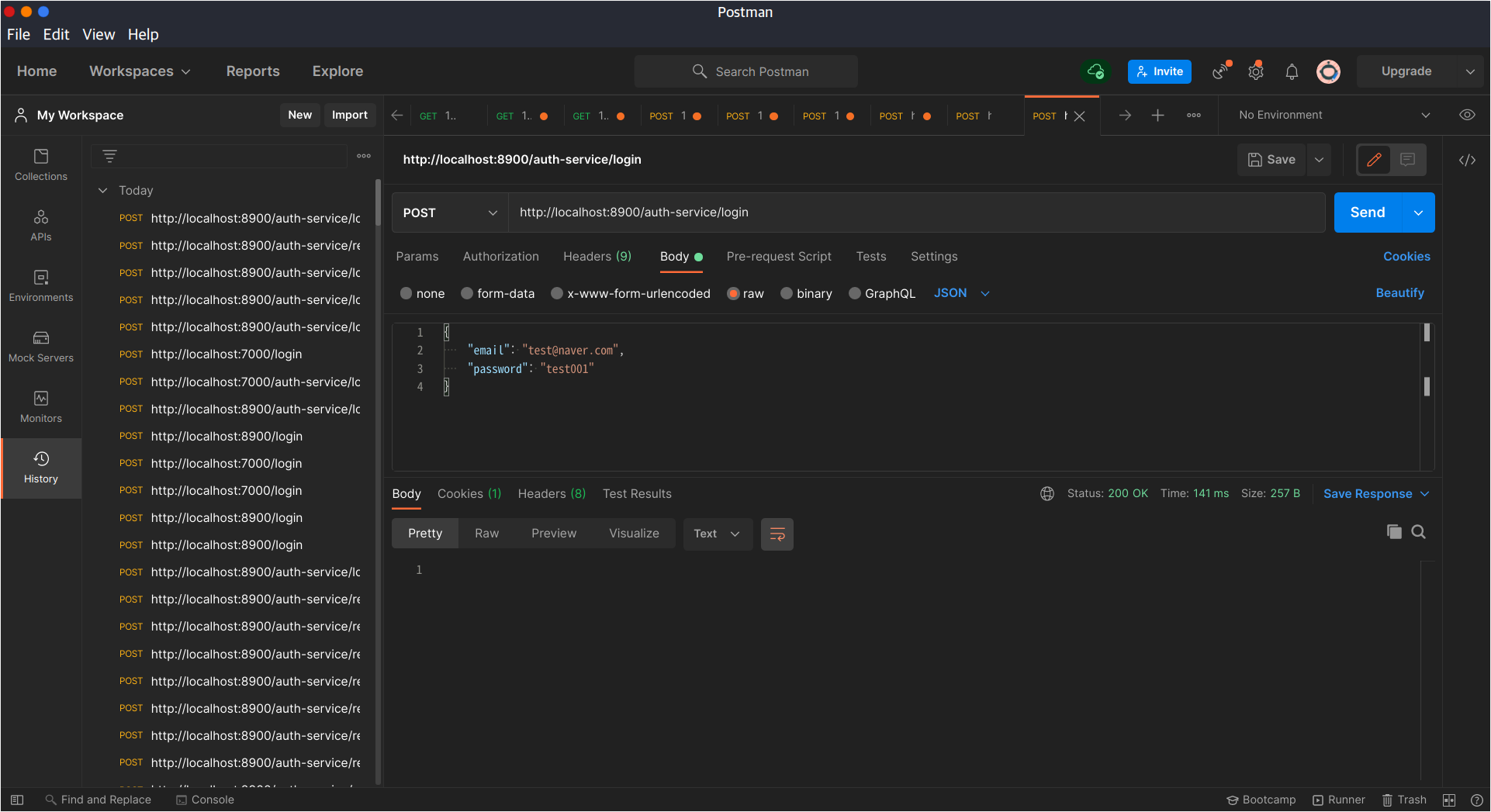 application.yml파일에 routes정보들을 수정했습니다. /auth-service/login, /auth-service/register, /auth-service/ 총 3개의 route 정보를 수정하고 만들었는데 login, register는 POST 요청으로 들어왔을 때의 조건을 만들어주었으며, /auth-service/은 추후에 만들 유저정보 획득, 대여 정보, 게시글 정보 등 get 요청에 관한 부분을 위해 만들었습니다. 그리고 다음에 get요청 filters 아래에 필터를 추가하여 인가되었을 때만 이 요청이 허용되도록 필터를 만들도록 하겠습니다.