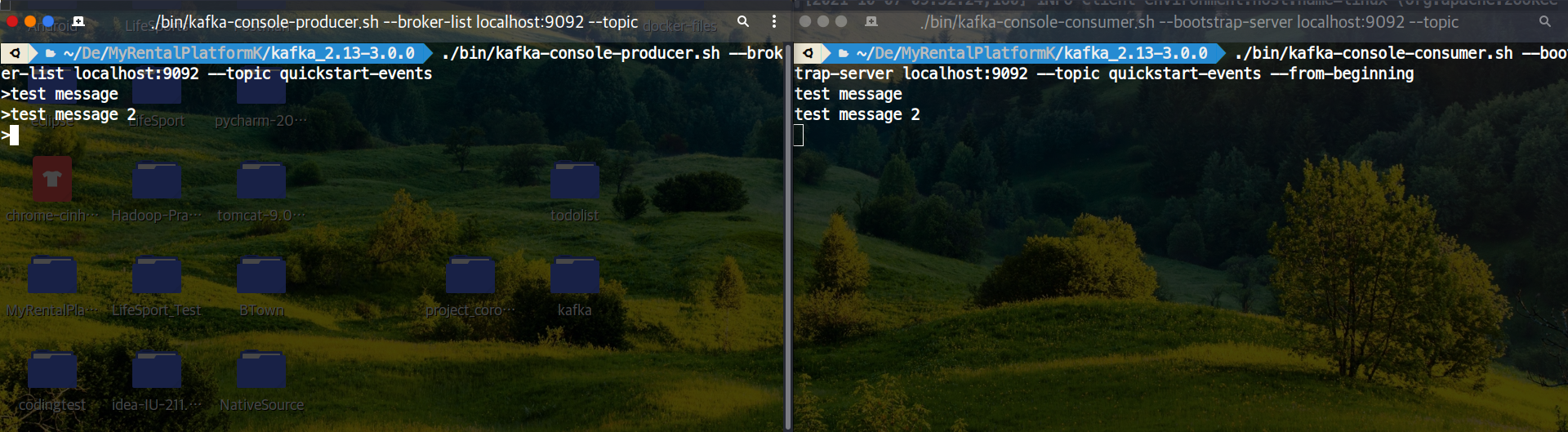 2개의 test메시지가 잘 전달이 되는 모습을 살펴 볼 수 있습니다.