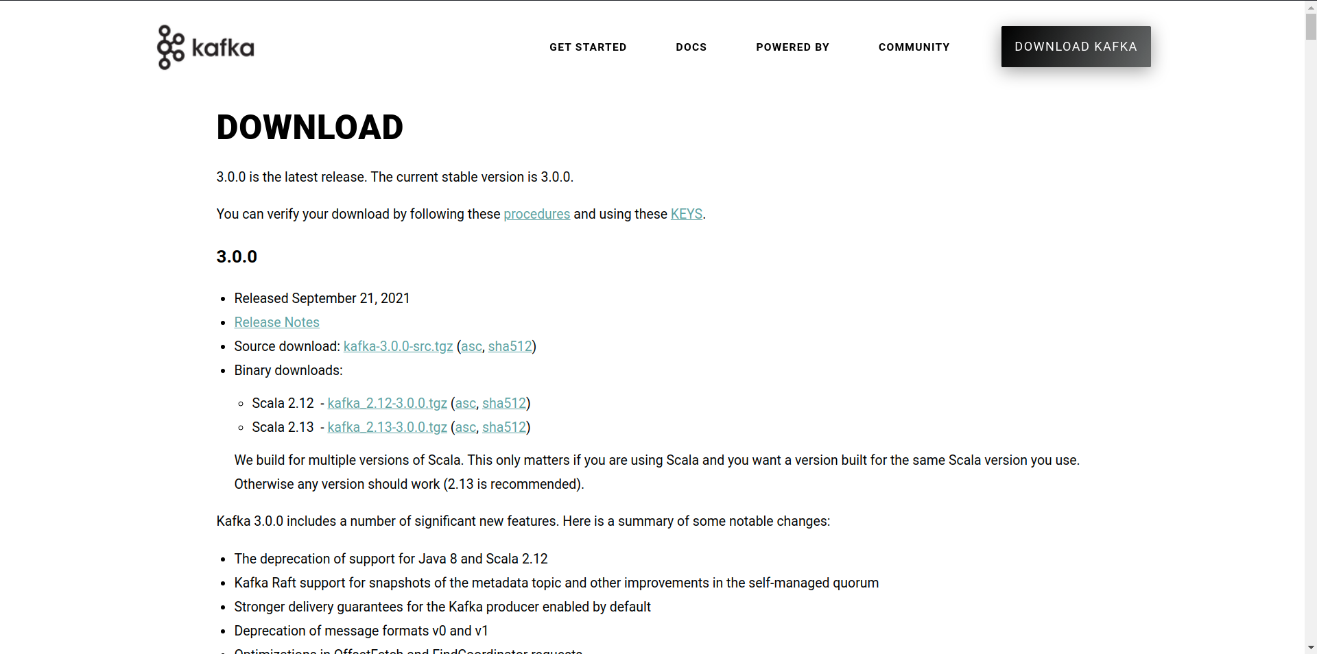 http://kafka.apache.org 홈페이지에서 카프카를 설치하도록 하겠습니다.