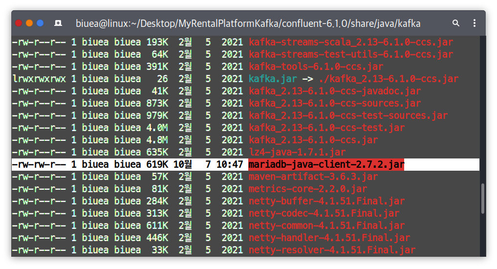 그리고 mariadb jar 파일을 복사해서 ./confluent-6.1.0/share/java/kafka에 붙여넣도록 하겠습니다.