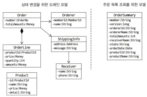 - → CQRS를 적용하면 통계를 위한 조회 모델을 별도로 만들기 때문에 도메인이 복잡해지는 것을 막을 수 있다.