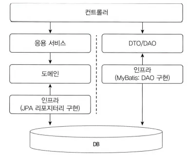 - 명령 모델 : JPA / 조회 모델 : 마이바티스, 하이버네이트의 @Subselect