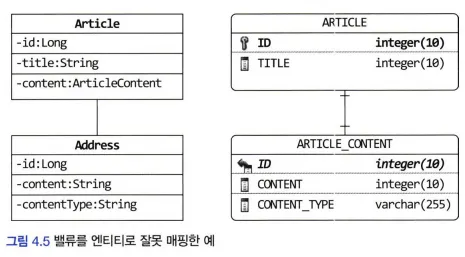 단지 별도 테이블에 데이터를 저장한다고 해서 엔티티인 것은 아니다. 주문 애그리거트도 OrderLine을 별도 테이블에 저장하지만 OrderLine 자체는 엔티티가 아니라 밸류이다.
