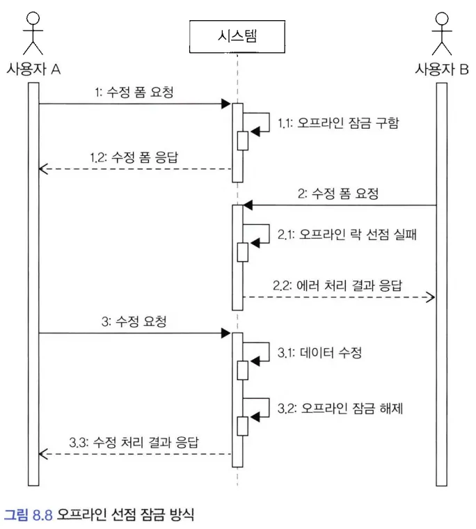 첫 번째 트랜잭션에서 오프라인 잠금을 선점하고 마지막 트랜잭션에서 잠금을 해제한다.