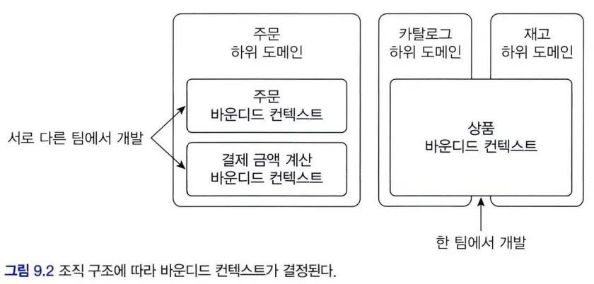 바운디드 컨텍스트는 기업의 팀 조직 구조에 따라 결정되기도 한다.