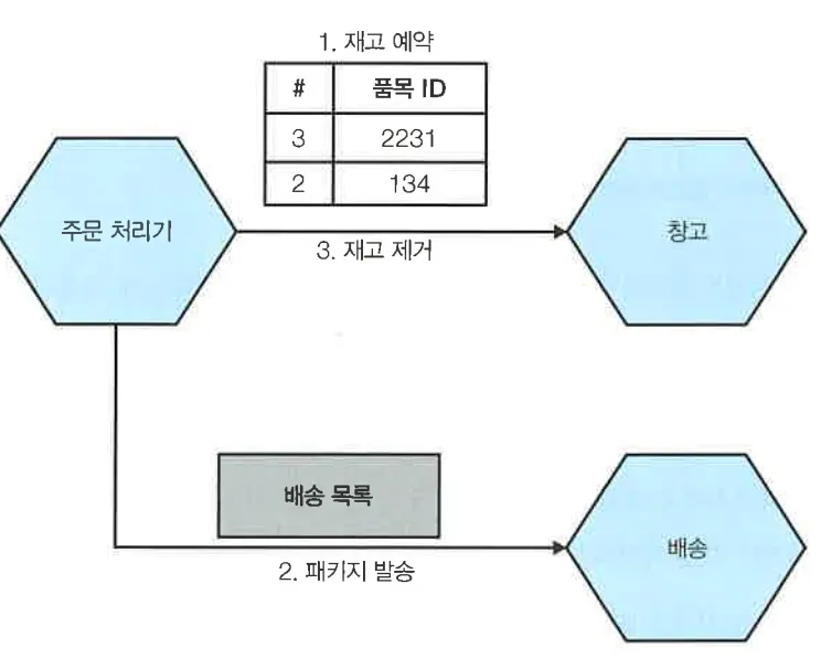 그러나 배송 서비스를 사용해 패키지를 발송하기 전에 창고 서비스에 재고를 예약해야 하고 배송이 완료된 후 재고를 업데이트 해야한다.