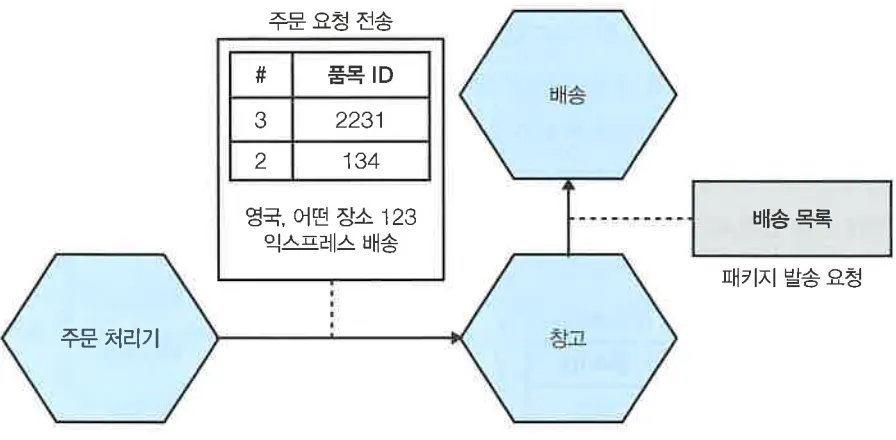 배송 마이크로서비스가 배송 목록을 원한다는 사실을 숨기기 위해 창고 서비스가 계약의 일부로 필요한 정보를 받은 다음 로컬에서 배송 목록을 만든다.