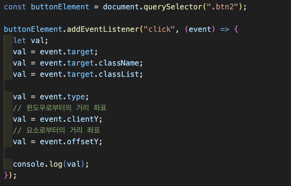 이벤트가 발생할 때 이벤트 객체를 가져올 수 있습니다.