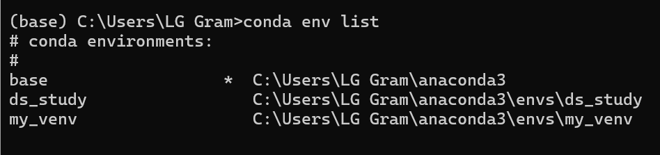 base 에서 ds_study 로 이동.conda install -y jupyter ipykernel