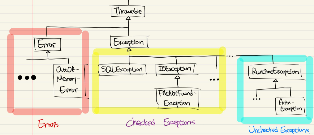 프로그램의 실행/컴파일 단계에서 많은 에러가 발생하게 된다. Java에서는 Error와 Exception이 있으며, Exception의 경우 checked exception