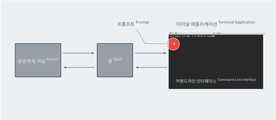리눅스나 맥 OS에는 터미널이라는 애플리케이션이 기본적으로 제공된다. 이 터미널은 하드웨어를 소프트웨어로 구현한 애플리케이션이다. 그래서 터미널이라고 하지만, 정확한 표현은 가상 터미널 또는 터미널 에뮬레이터이다.