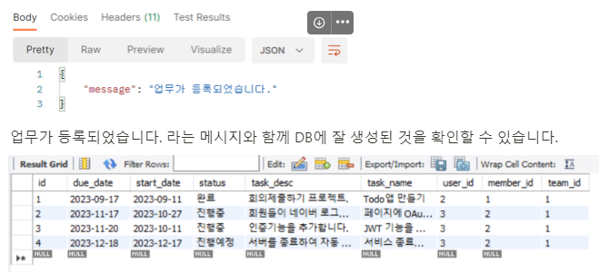 나는 AWS RDS 연동을 하였고, DB의 엔드포인트와 포트번호 3306을 넣어주었다. 로컬에서 진행하는 경우 엔드포인트에 localhost만 바꿔 넣어주면 된다. 그리고 DB명은 본인이 설정한 이름으로 바꿔준다.아래는 MySQL을 연동하여 진행된 결과물이다.