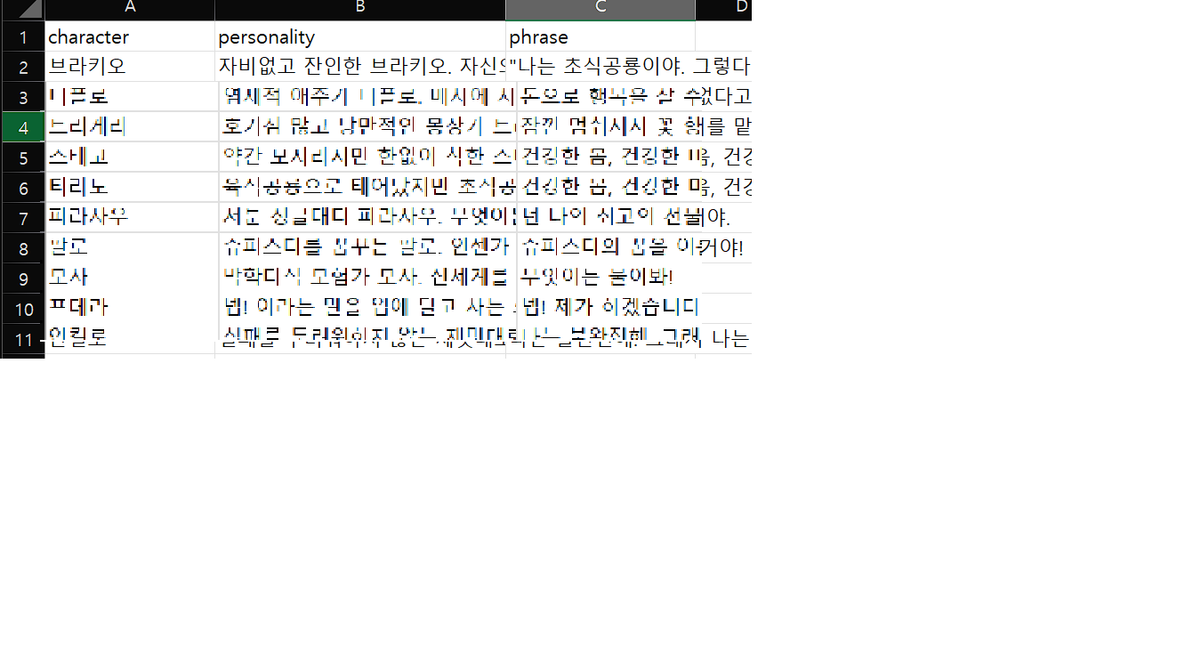 그런데, 디자이너로만 구성된 조직에서 '작가' 역할을 할 사람이 없다는 것이 문제. 대표가 ChatGPT를 가지고 고군분투하는 중인 상황. AI가 알아서 캐릭터들의 성격과 세계관, 그리고 관계를 이해하고 재밌는 이야기를 생성하게 할 수는 없을까?