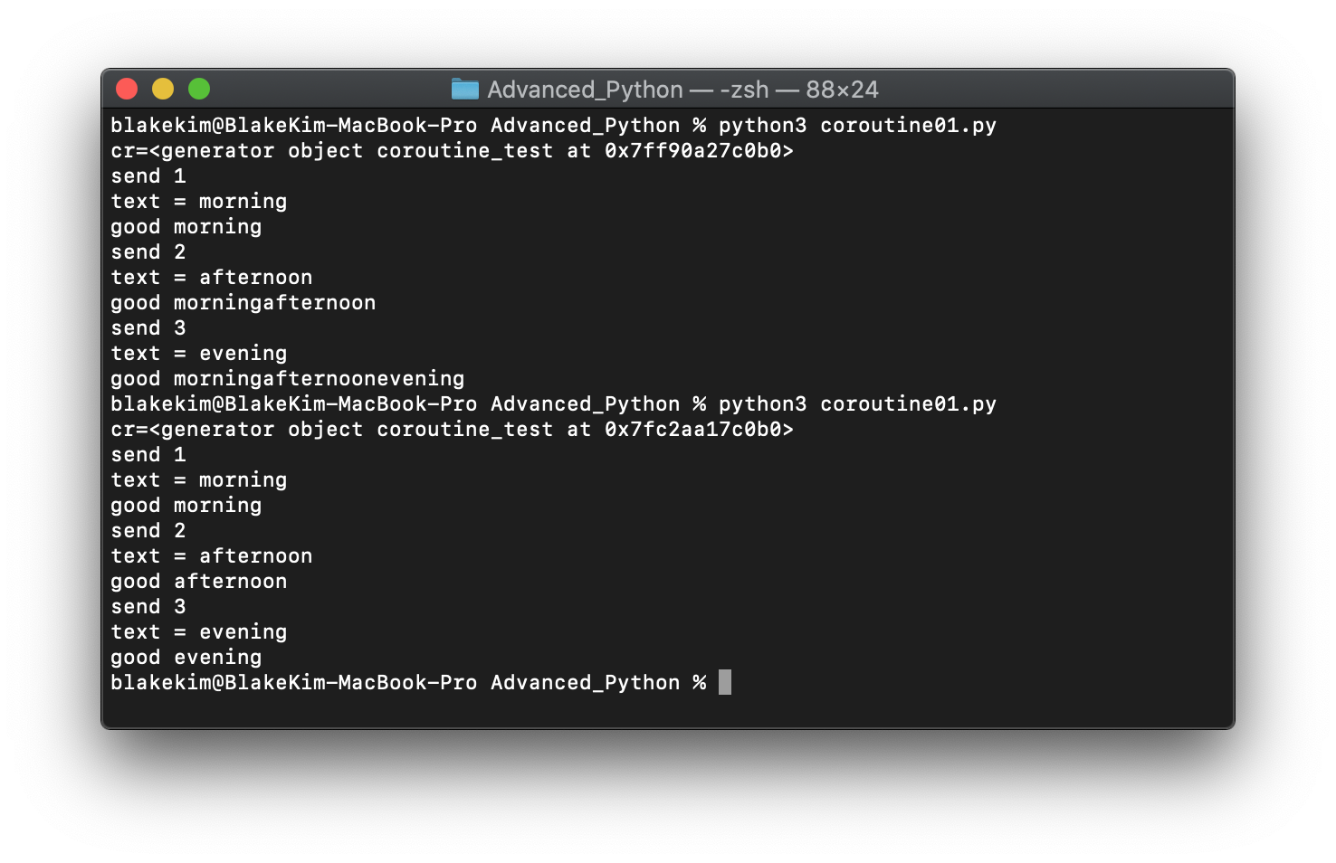 ํ์ด์ฌ ์ฝ๋ฃจํด์ ์ด์จ์ดํฐ๋ธ๋ก ๋ค๋ฅธ ์ฝ๋ฃจํด์์ ๊ธฐ๋ค๋ฆด ์ ์๋ค.