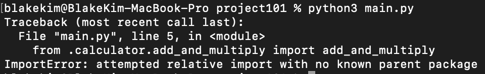 main.py에서 상대경로로 add_and_mutiply 를 임포트 했을 때 발생하는 에러를 확인하고