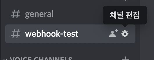 특정 채널에 웹훅을 만들기 위해서 먼저 디스코드 채널 편집으로 들어갑니다.