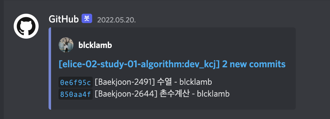 예로 들면 이전에 코딩테스트 스터디를 운영하면서 GitHub와 Discord를 연동시켜놨는데,