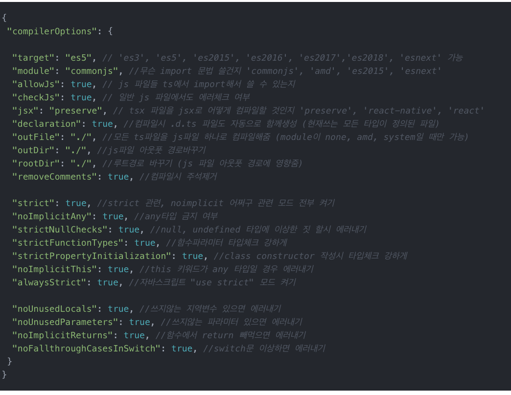 ts 파일을 js파일로 컴파일할때 설정들을 지정할수 있는 파일