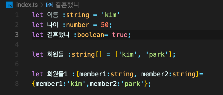 객체 같이 복잡한 타입 지정도 변수를 활용하여 깔끔하게 정리가 가능하다.