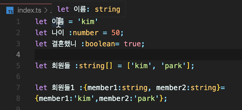let 회원들 : (number | string)[] = ['kim', 1 ] // 정상