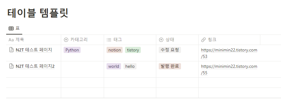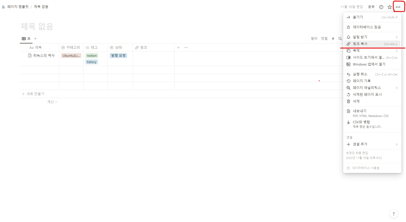 1. 노션에 아래와 같은 템플릿을 준비한다. (링크 복제 추천)
