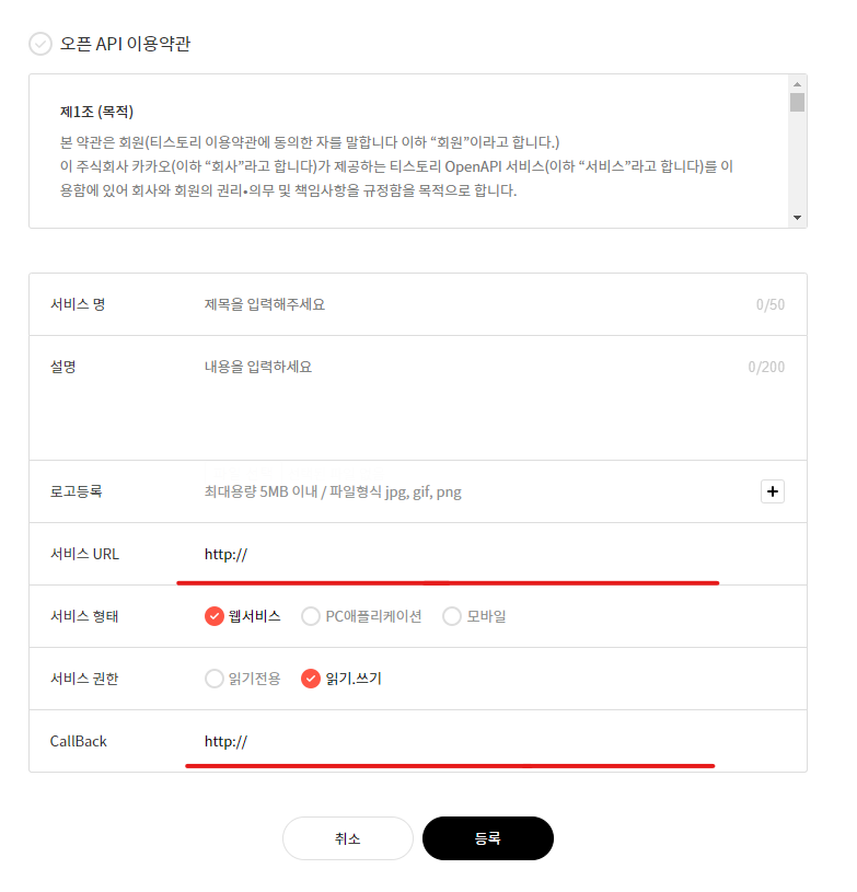 - 티스토리 Open API 에서 본인의 블로그 등록