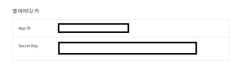 2. 앱 등록후 나오는 화면에서 ‘App ID’와 ‘Secret Key’를 사용할 것이니 따로 복사해둔다.
