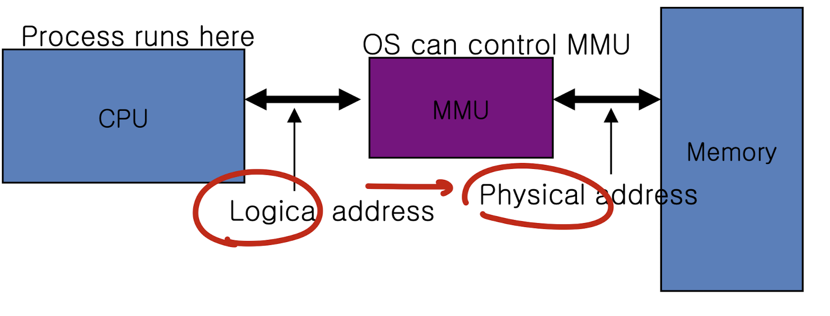 process로 메모리에 올라갈 때, 어디부터 할당할지를 고정 and OS가 address를 rewrite해줌