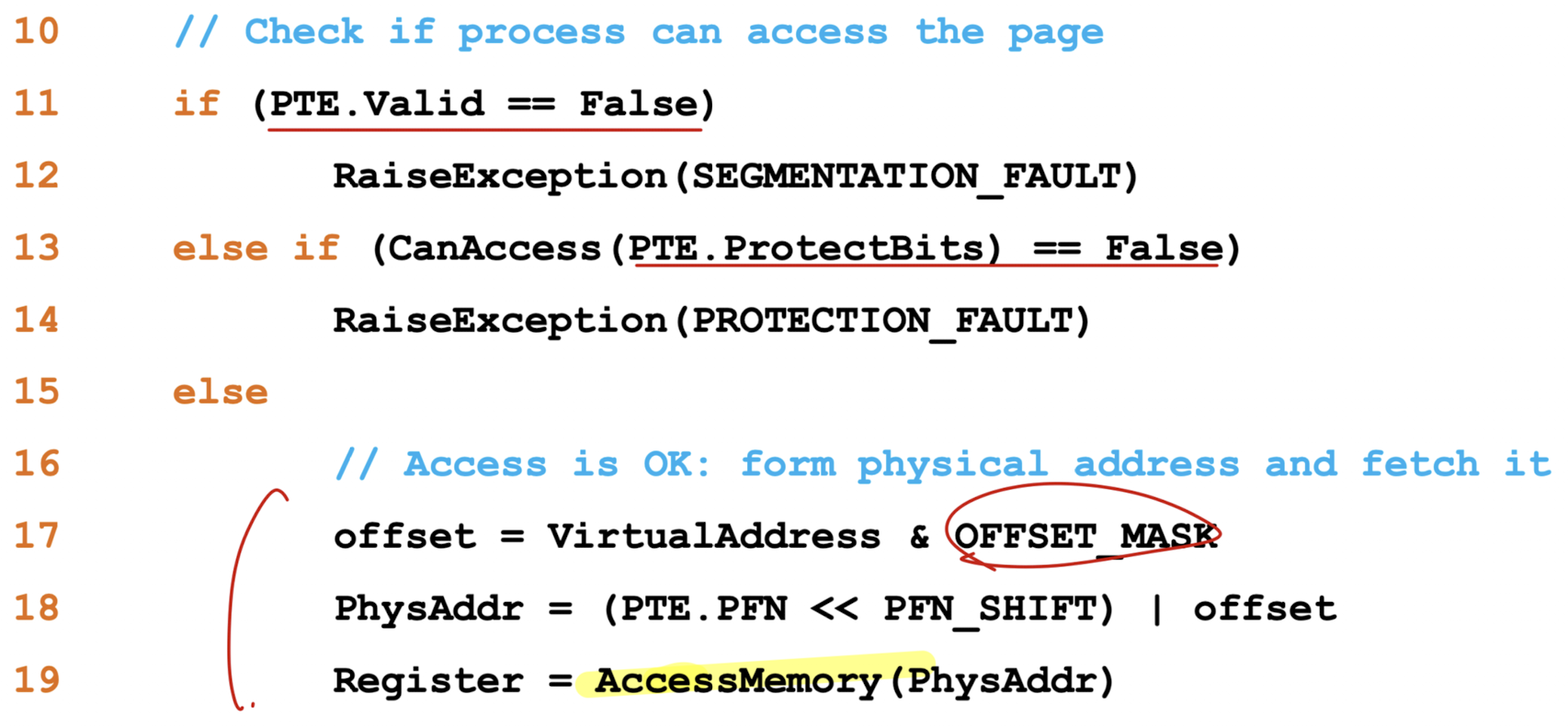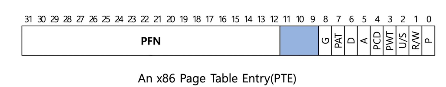 PFN(Physical Frame Number)와 몇가지 비트로 구성되어 있다.