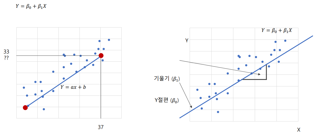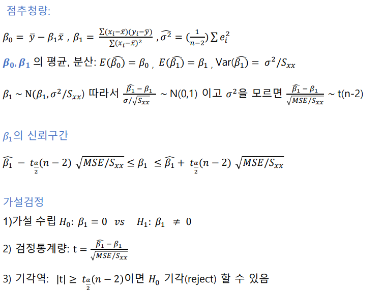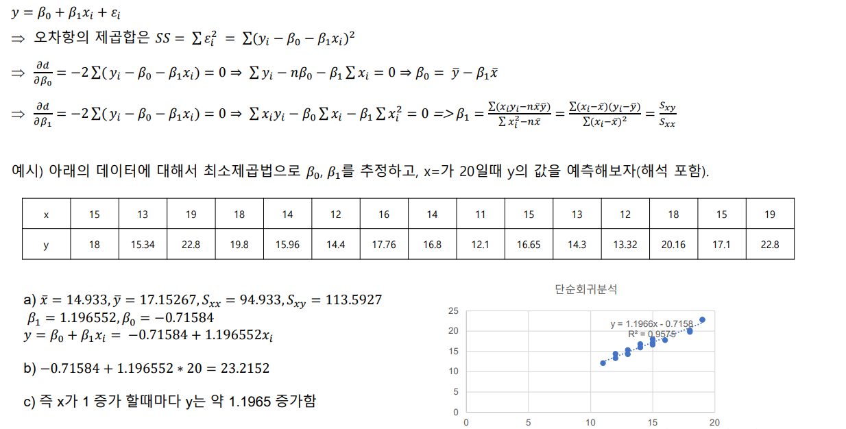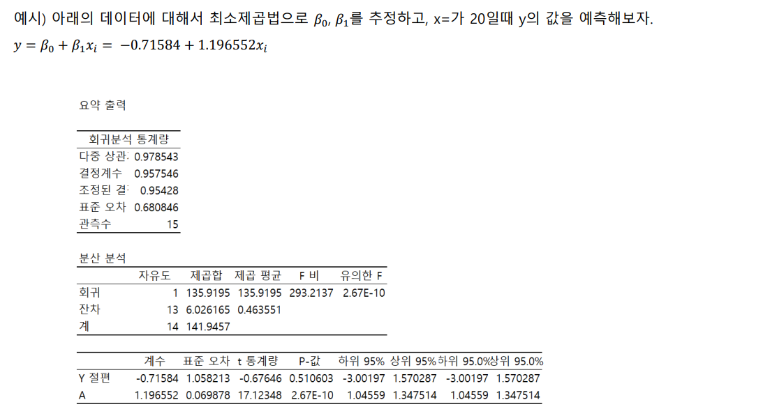최소 제곱법: 회귀 모형의 모수 β0, β1 을 추정하는 방법중 하나를 최소 제곱법이라고 하며, 회귀 모형의 모수를 회귀 계수라고 함