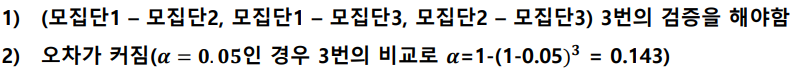 1) 각 모집단의 정규 분포를 따른다
