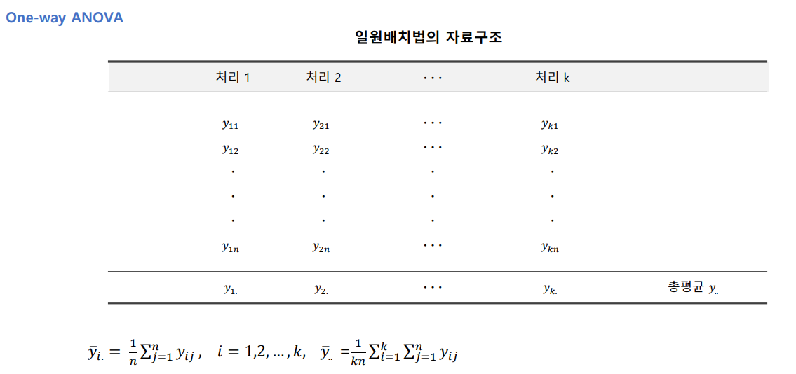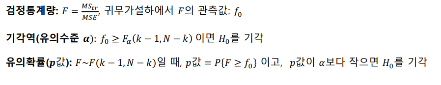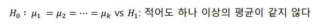 분산분석의 가설: H0: 각 집단의 평균은 동일하다 vs H1: 각 집단의 평균에 차이가 있다