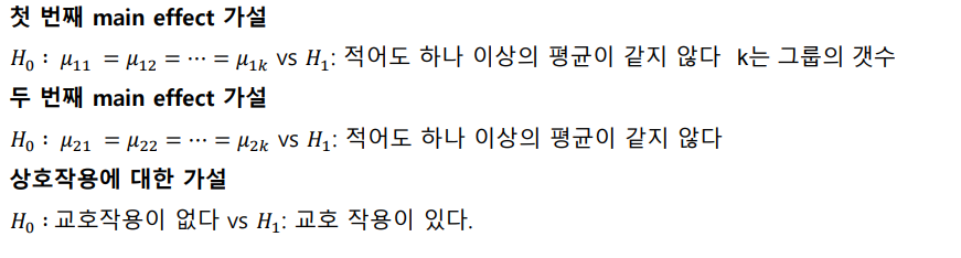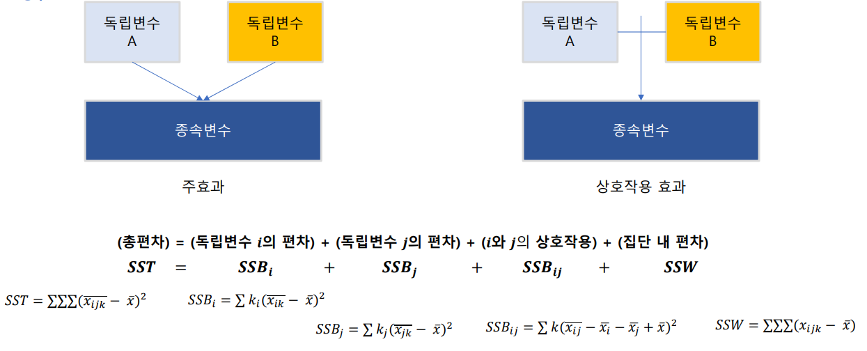 Two-way ANOVA: 한 개의 방응 변수와 두 개의 독립 인자로 분석하는 방법