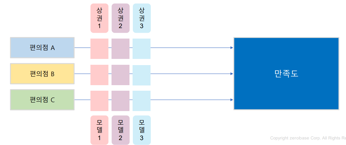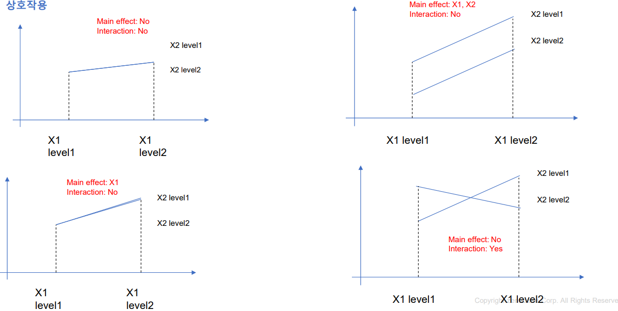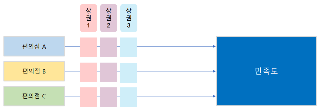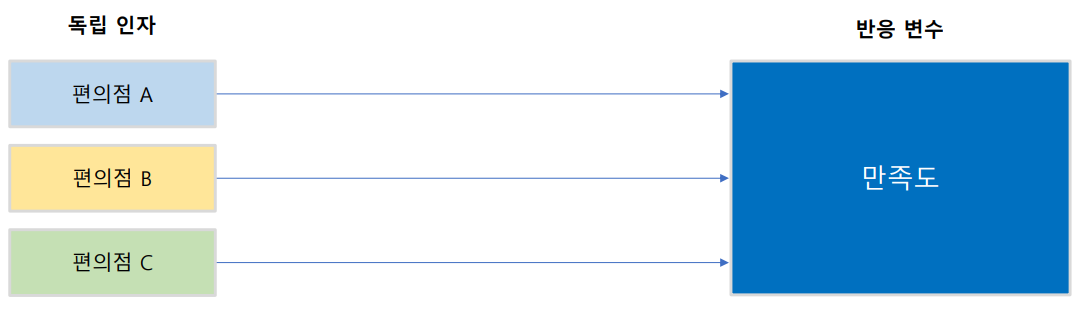 예) 만족도에 영향을 주는 인자가 편의점 브랜드와 상권이라고 할 때, 편의점 브랜드별로 상권을 변경하면서 만족도가 다른지 측정하고 분석하는 방법