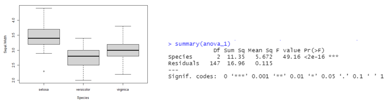 One-way ANOVA: 한 개의 반응 변수와 한 개의 독립 인자