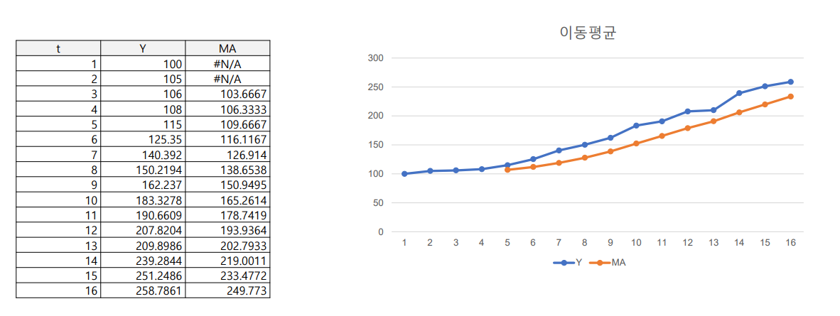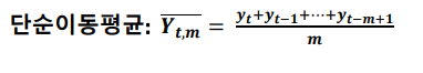 이동 평균 모형(moving average) : 최근 데이터의 평균을 예측치로 사용하는 방법