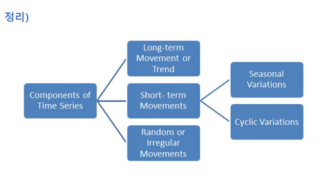 경향/추세(trend): 시계열 데이터가 장기적으로 증가(감소)할 때, 추세가 존재함