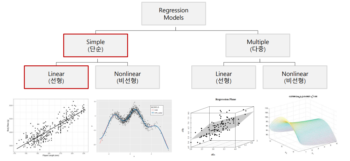 회귀 분석(regression analysis): 변수들간의 함수적 관계를 선형으로 추론하는 통계적 분석 방법으로 독립변수를 통해 종속변수를 예측하는 방법